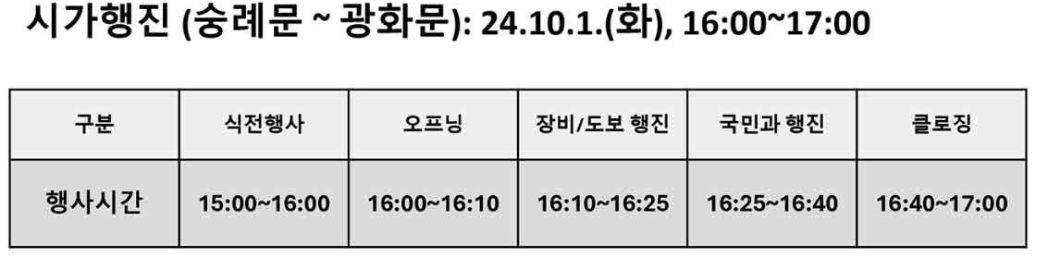 국군의 날 광화문 시가행진 구간은 다음과 같아요.