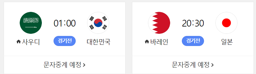 새벽 1시에는 사우디아라비아와 대한민국의 경기