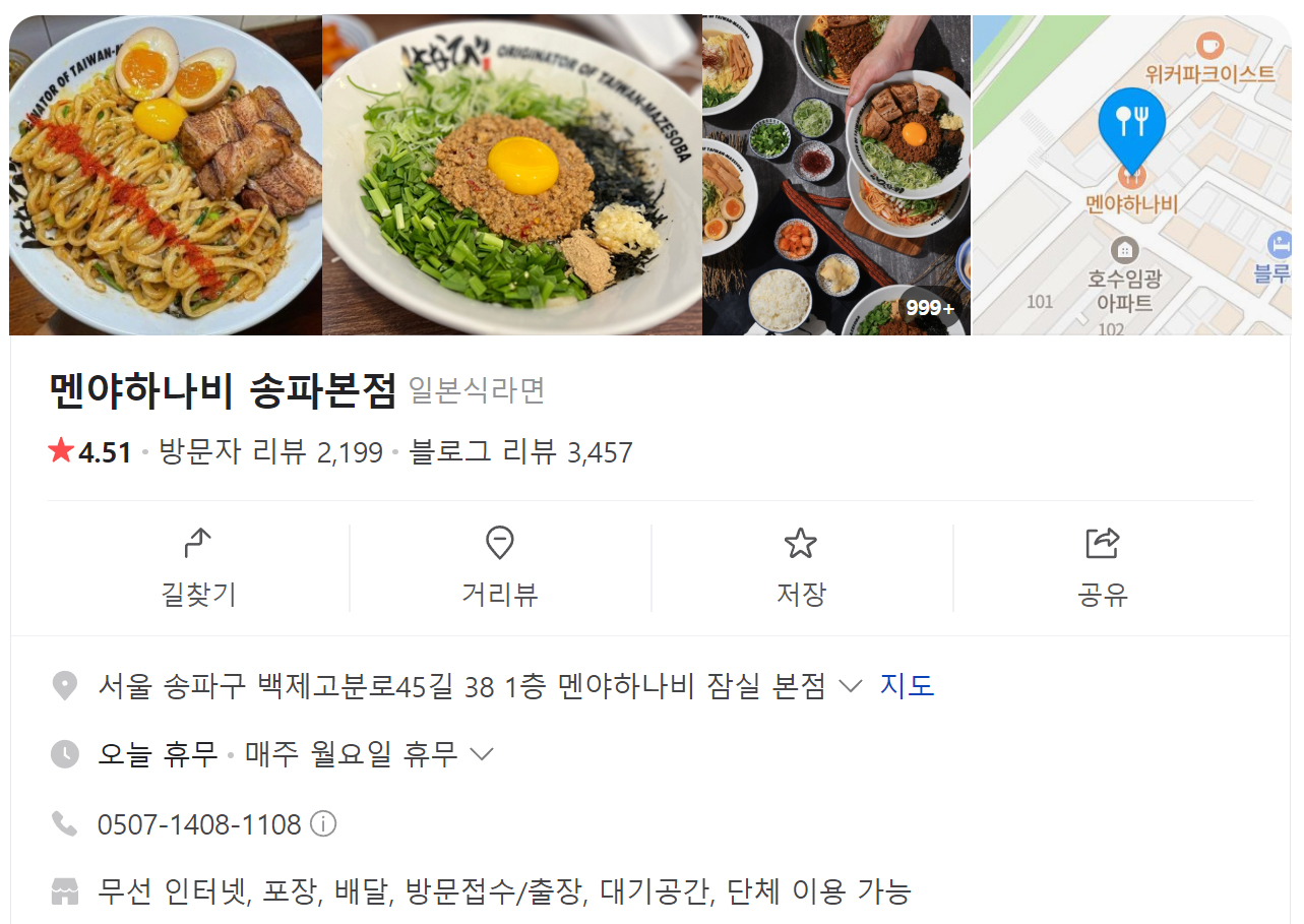 잠실 송리단길 ♥ 멘야하나비
