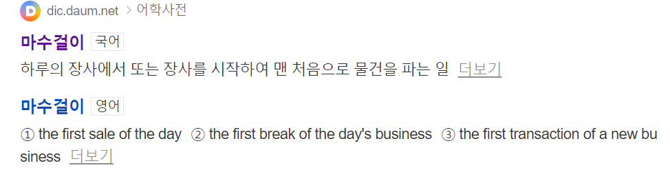 마수걸이란 뜻은 장사꾼들이 하루 장사를