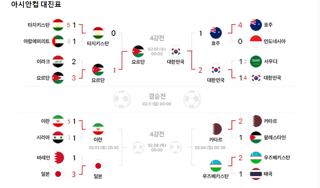 아시안컵 축구 경기 일정 조금 전 경기가 끝났는데