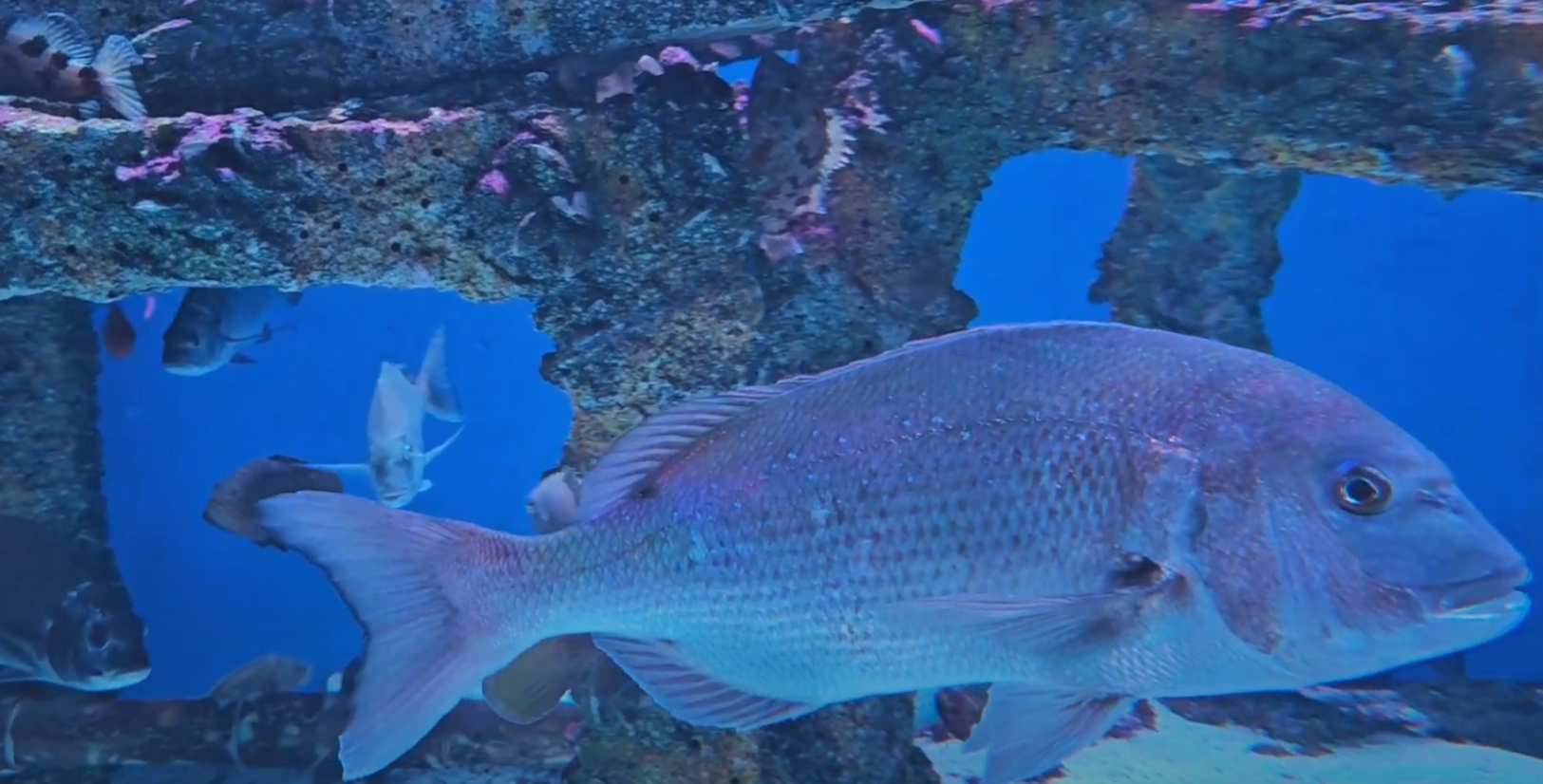 웅장한 규모의 대형 수조에서 유유히 헤엄치는