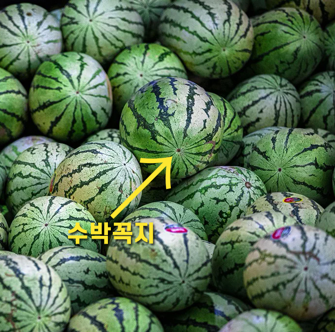 수박꼭지가 바로 아래수박에 비해 꼭지가 작지요.